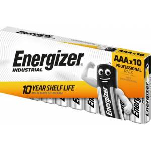 - Energizer Industrial Batteries are designed to keep your devices running for longer. Providing power that is consistent and long-lasting, each battery provides you with fantastic value for money. AAA batteries are used in a wide range of items, including a range of tools and this battery gets the most from your items. Provided to you in a pack of 10, these batteries can be stored longer without any reduction in the level of quality.