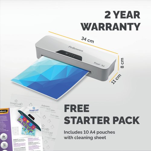 | STARTER PACK INCLUDED - Your Fellowes A4 laminator includes a 10-document starter pack with samples of Fellowes A4 laminating pouches that give a suitable finish to your laminated work |