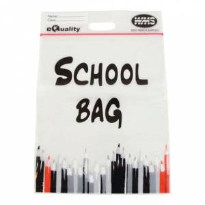 - Robust polythene bags with handles for carrying lightweight items. School carrier bags with handles, ideal for books and artwork. Includes name and class label space. Contents not included. In today's educational environments, efficient tools are necessary for resource management. These robust polythene bags are designed to support teachers in organising resources. Constructed from durable 240 micron (2 x 120) polythene, they withstand everyday use. The bags come in A3 size, which cater to various educational needs, such as safeguarding reading books, artwork, or homework. The red press-seal strip adds colour and ensures secure closure, while the punched handle enhances portability. These bags offer a labelling space for including name and class to prevent misplaced items, promoting organisation within classrooms. Contents are not included.