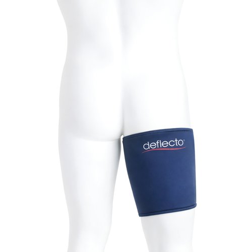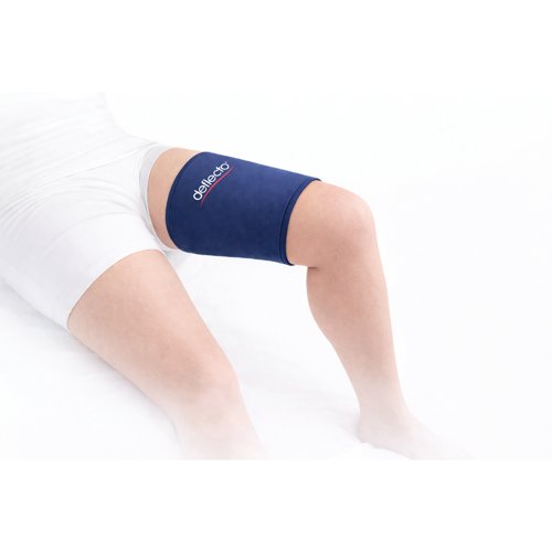 - Deflecto Reusable Cool and Heat Sleeve for Thighs provides both cold therapy to reduce swelling and inflammation, and heat therapy to relax muscles and improve circulation. Helping to relieve muscle strains, sprains, stiffness and joint discomfort - the sleeve is also ideal for hamstring, quad and upper leg injuries. Suitable for sports recovery rehabilitation and chronic pain management, the extra wide sleeve offers full upper leg coverage for effective, consistent therapy. The material is soft and stretchable, comfortable to wear whilst resting or recovering. Cold therapy minimises post-exercise soreness and injury-related swelling, as well as supporting faster recovery after physical activity. To use, let the pad cool completely after heating. Placing a hot pad directly into the freezer can damage the material and reduce product life. To prevent moisture buildup or freezer burn, place in a ziplock or freezer-safe bag. Freeze or refrigerate for at least two hours, or overnight for best results.