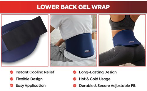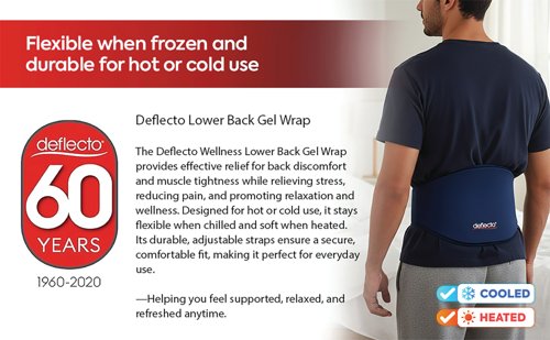 - Deflecto Reusable Cool and Heat Pack for Lower Back eases pain, muscle tightness and menstrual discomfort - with an easy transition between hot and cold cycles. An easy fastening belt design provides secure cooling and pain relief to target the lower back area, applying the pack cold helps to reduce swelling, inflammation, fevers and sprains. Designed for hot and cold use, the pack stays flexible when chilled and soft when heated. To use, let the pad cool completely after heating. Placing a hot pad directly into the freezer can damage the material and reduce product life. To prevent moisture buildup or freezer burn, place in a ziplock or freezer-safe bag. Freeze or refrigerate for at least two hours, or overnight for best results.