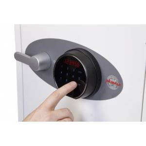 | LOCKING - Fitted with an advanced high security touchscreen keypad & fingerprint lock with clear LED display, internal alarm, dual control, hidden code and scrambled code that can be programmed as standard with up to 128 fingerprints. |