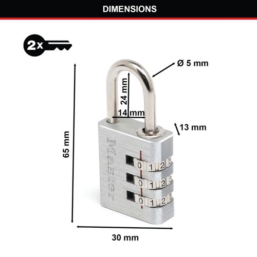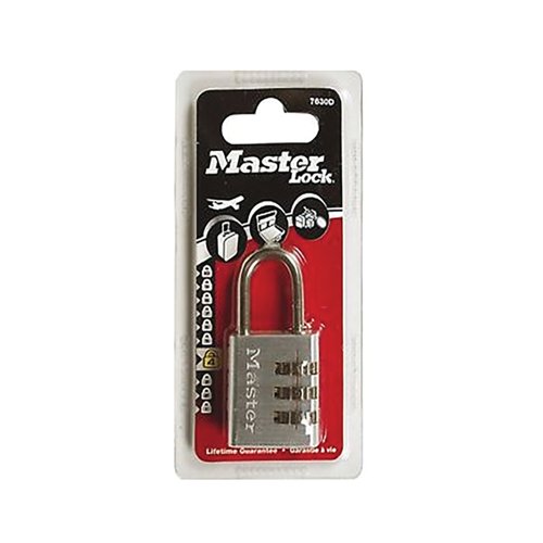 Lightweight yet secure, the Master Lock Combination Padlock is ideal for protecting your belongings while travelling or in the home. Create your own 3-digit combination and reset it when necessary, or regularly for added security. A solid aluminium body offers the essential security you need for your personal property. Ideal for a variety of applications including suitcases, gym bags, desk drawers and lockers.