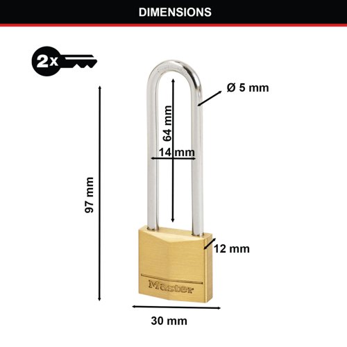 Master Lock 30mm Solid Brass Padlock 64mm Shackle 130EURDLJ