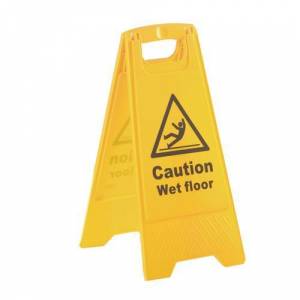 - Description: Wet floor signs. Dimensions: W x L mm: 300 x 630. Legend: Caution - wet floor. Length mm: 630. Material: Plastic. Open Area Width mm: 370. Product Type: General warning safety signs. Sign Description: General safety signs. Sign Text: Wet floor. Size mm: 300 x 630. Type: General warning safety signs. Width mm: 300.