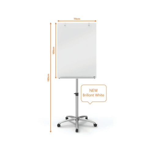 | Contents: 1 x Nobo Glass Flipchart Easel, includes 1 marker and 2 extra strong magnets, Brilliant White, 1903949, Whiteboard dimensions (HxW): 1000 x 700mm, Dimensions with stand (HxWxD): 1850 x 700 x 745mm, Weight: 20kg, supplied flat packed |