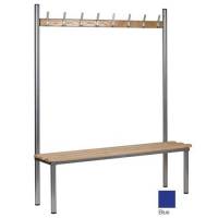 Club solo changing room bench, blue 1000mm wide x 400mm deep with 5 hooks