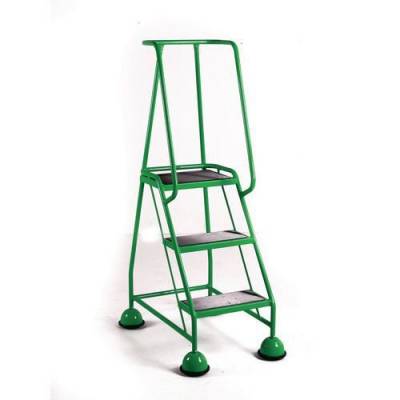 Mobile platform steps with cup feet and full handrail 3 tread in green