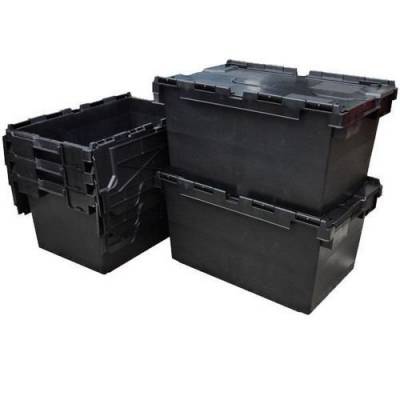 Recycled 80 litre attached lid containers - black base / yellow lid